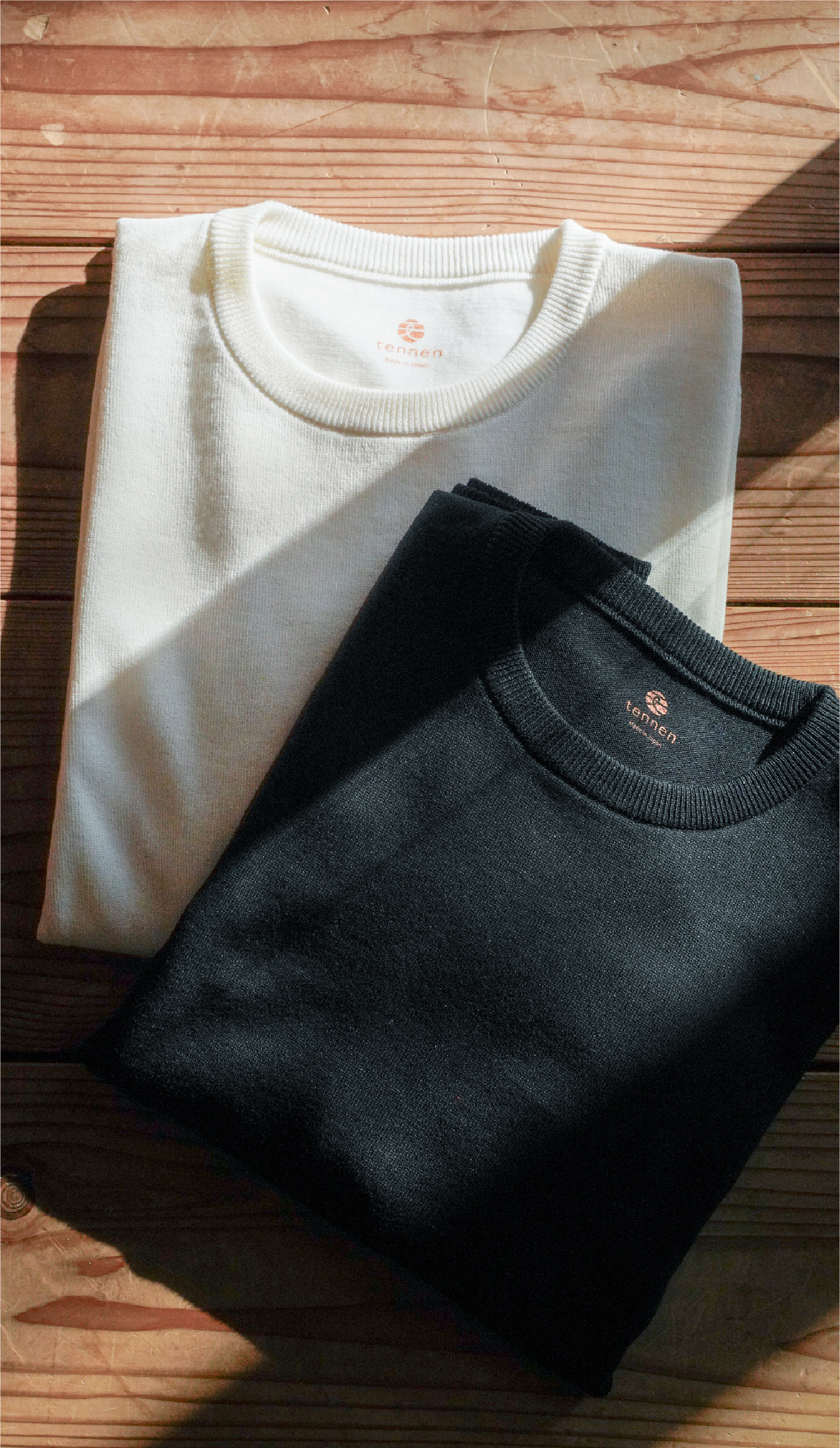 だから私たちが目指すのは、プレミアムな素材による質感や着心地を追求した、皆さんのお気に入りになる快適な一着です。tennenのアイテムの多くはシンプルで飽きのこない、かつ老若男女誰もが着用できるスタイル。毎日着たくなるような優しい肌触りや、快適で丈夫な生地感、そして緻密なパターンメイキングによって、究極のデイリーウェアを生み出しています。