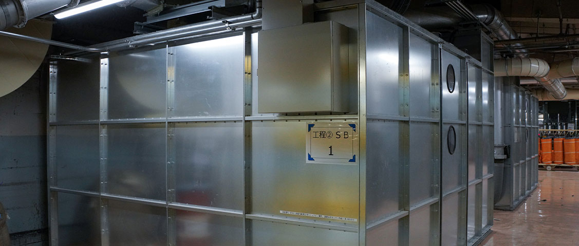 工場の敷地は広大で、いくつもの棟が工程ごとに区画され、通路でつながっています。 髪の毛より細い糸をつくるために稼働する機械は、その対象の繊細さに反して何千倍も巨大で、ものづくりのスケールに思わず圧倒されます。