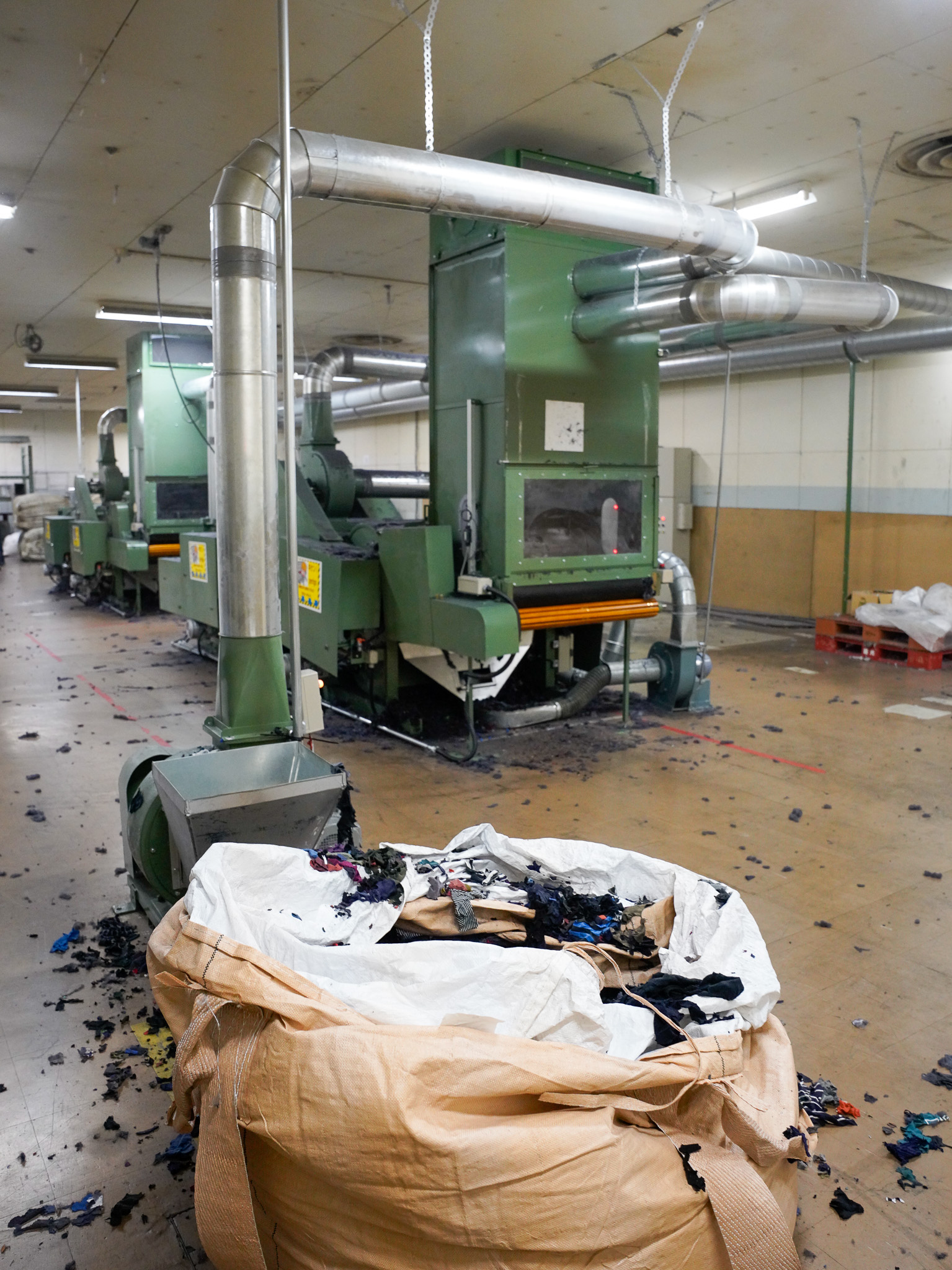 取材時に動いていたのは他社のロットでしたが、不要になった衣料品が再び繊維として使える状態になるまでの一連の流れを、簡単に共有できればと思います。