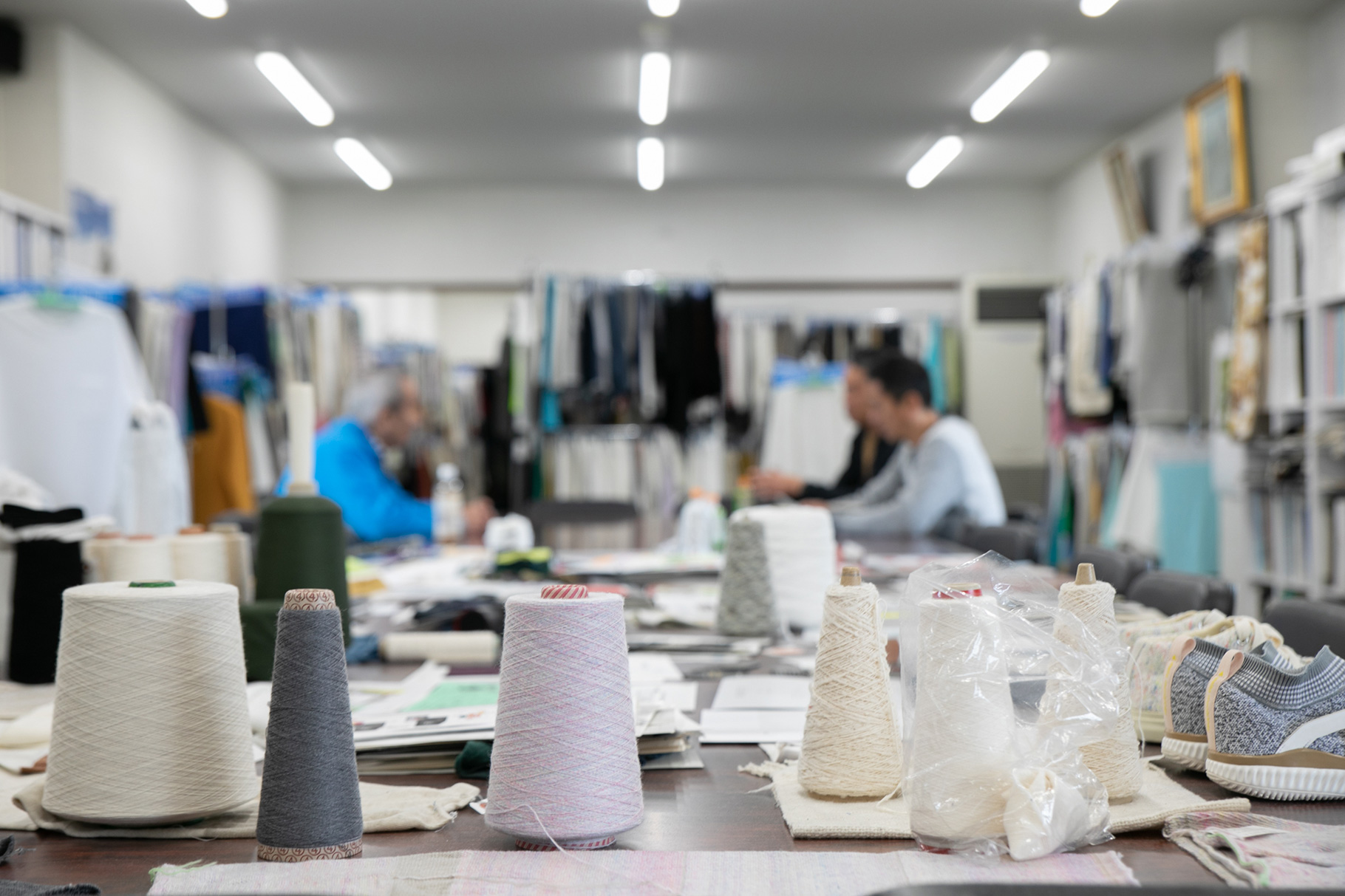 原料の生産から始まり、糸づくり、編み立て、染色、縫製と、一枚の服に対して多くの会社と人々が携わっているのです。