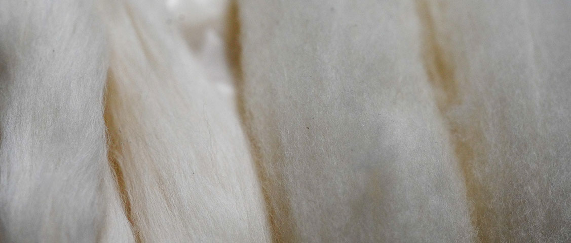 こちらが、出来上がったカードスライバー。なんとなく糸に近づいてきました。短い繊維が取り除かれ、強度のある糸が残ったロープ状の束になっています。