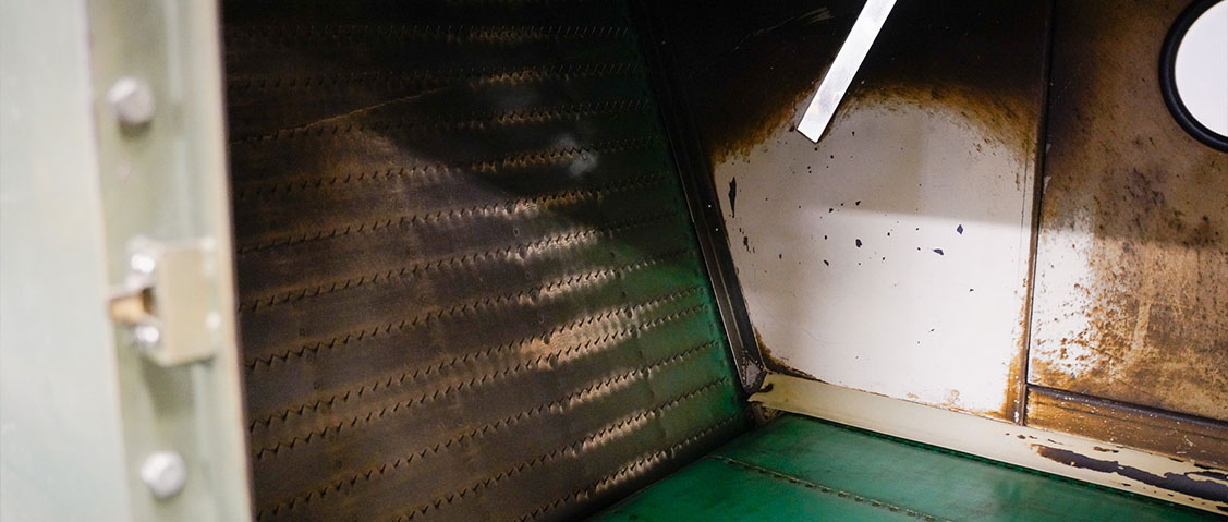 写真のタンク状の機械では、コーンの外側だけでなく芯まで均一に熱が届くよう、内部を真空にして処理しているのだそうです。