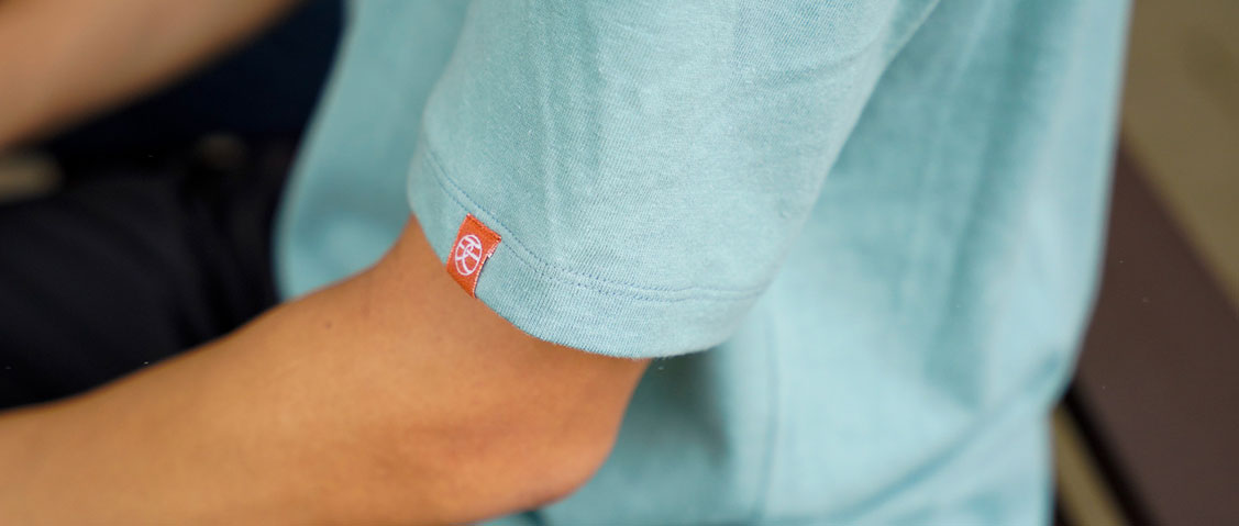 具体的には、回収された製品から綿100%のものを選別し、タグや縫製糸、付属部材を丁寧に取り除いたうえで反毛します。得られた反毛わたをバージンのオーガニックコットンと適切な比率でブレンドして紡績し、糸に仕立てます。こうして生まれた糸を用い、Tシャツ、スウェット、手拭いなどのBORO製品としてこれまでに展開してきました。