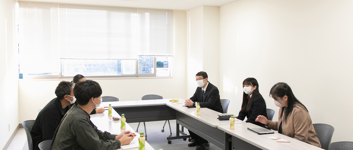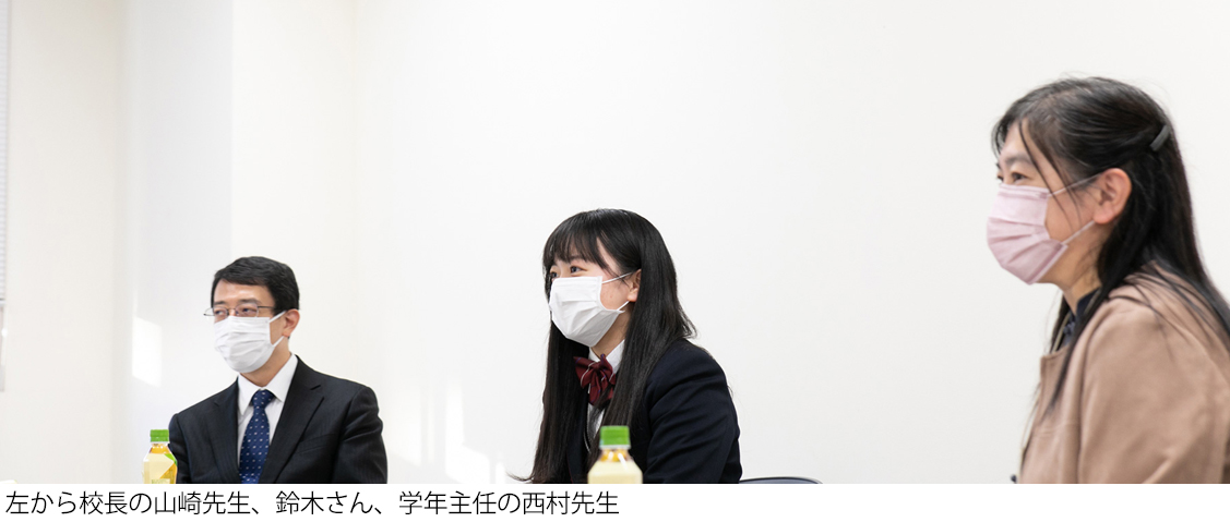 彼女はその後、収集したデータをもとにプレゼンテーションを制作して、新聞社主催のSDGsのアイデアコンテストに応募したそうです。今回はその発表をみせていただくと共に、今度は私たちが彼女について取材させていただくことに。校長先生や担当の先生にも立ち会っていただきながら話を聞かせていただきました。