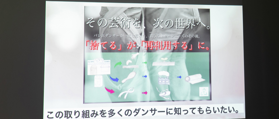 「実際にどのような仕組みを作ってトゥシューズを回収し、リサイクルするかというのは今後の課題ですが、まずは問題を知ってもらう事と意識改革につながる提案をすることが大切だと考えて応募しました」